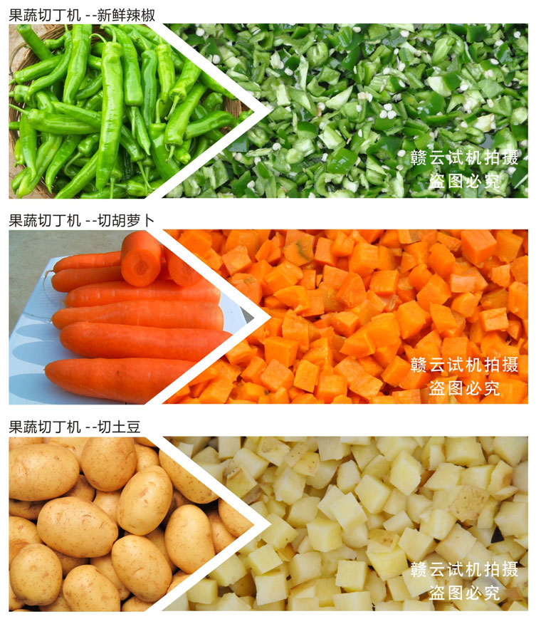 GY-QD-130型專用切丁機主要部件采用鋁合金和不銹鋼材質(zhì),以保證長期工作不生銹、不腐蝕、無毒、無害,符合食品衛(wèi)生加工要求,適用于脫水蔬菜、速凍蔬菜加工及食品醬菜行業(yè)加工各種根、莖類蔬菜成小立方體或長方體形狀,該機采用復合刀具,一次成型,形狀規(guī)則、切片光滑,成型效率高,操作方便、能耗低,深受食品加工伙伴青睞。