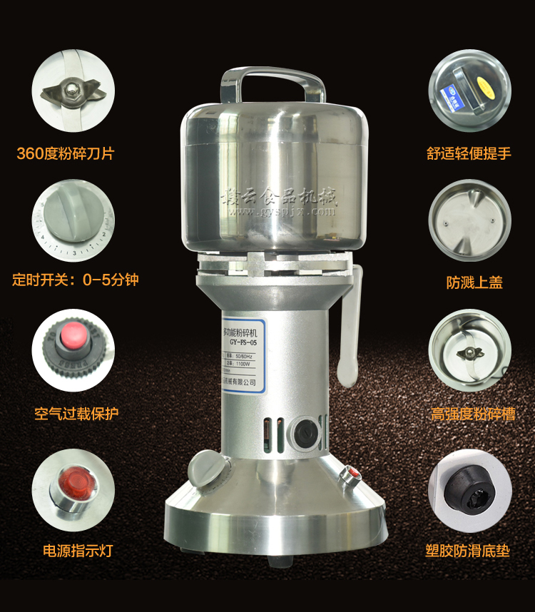 贛云系列多功能粉碎機(jī)采用純銅高速電機(jī)帶動粉碎刀片將物料快速打成粉末,可用于粉碎五谷、雜糧、田七、阿膠、白叁等,一般粉碎時間1-2分鐘即可,新款粉碎機(jī)改保險絲為空氣過載保護(hù)器,使用更安全,我廠提供的粉碎機(jī)有100克-1000克不同型號的多功能粉碎機(jī)。