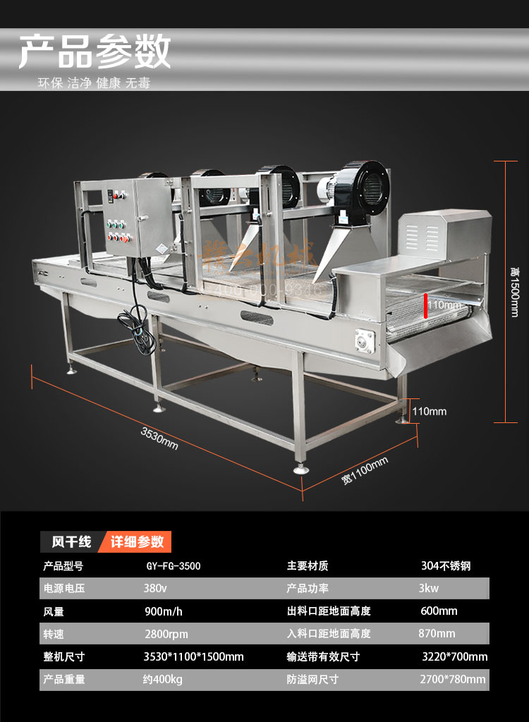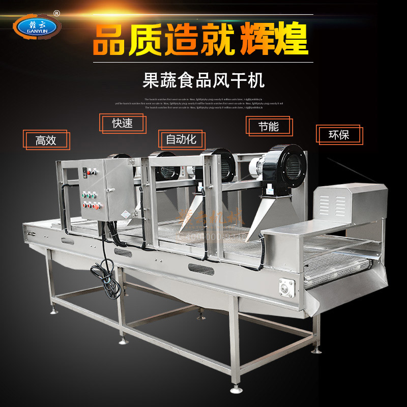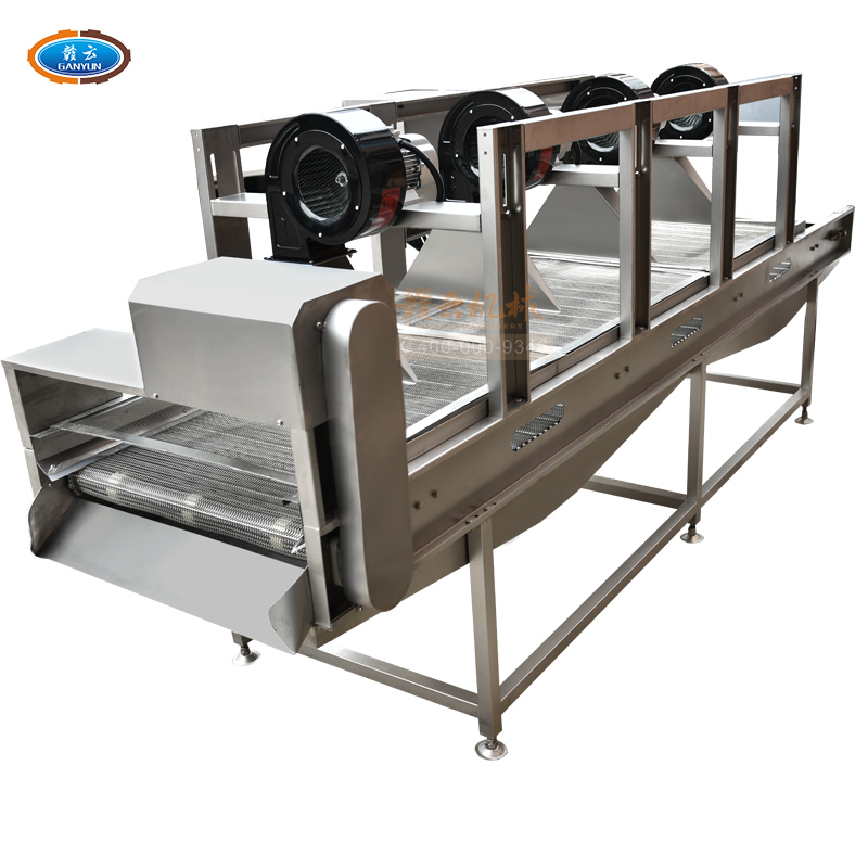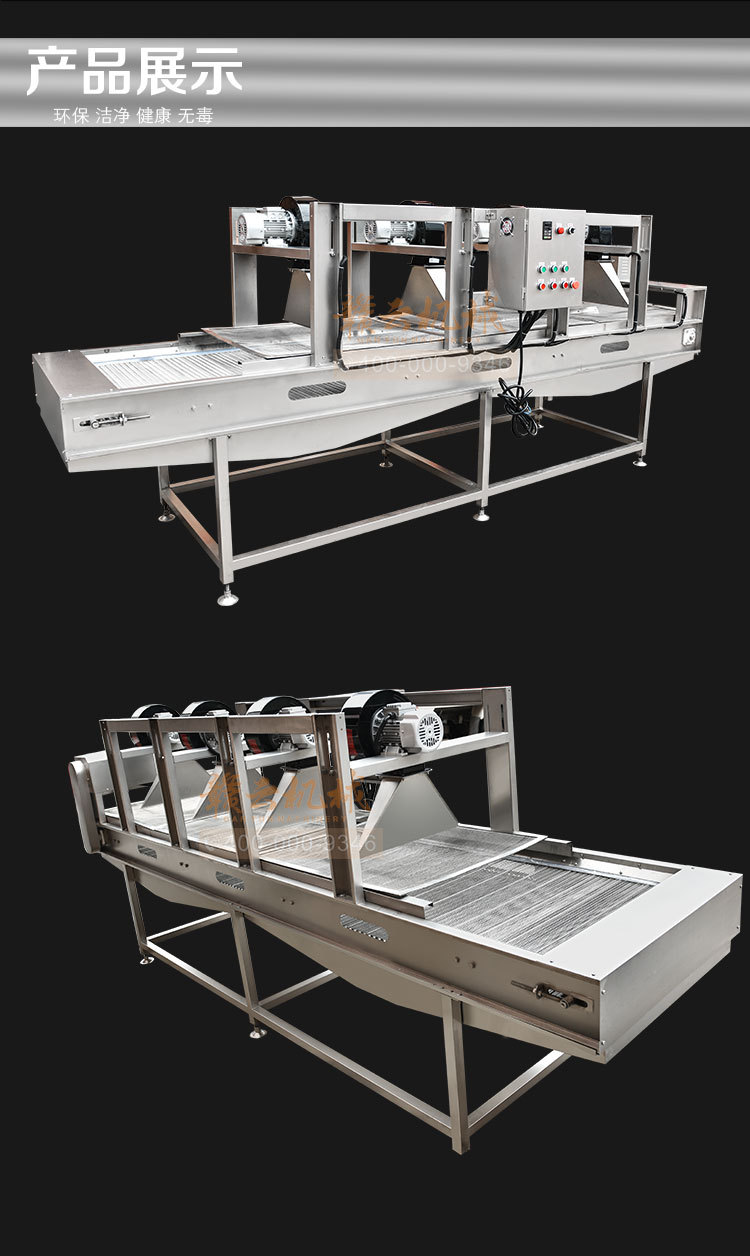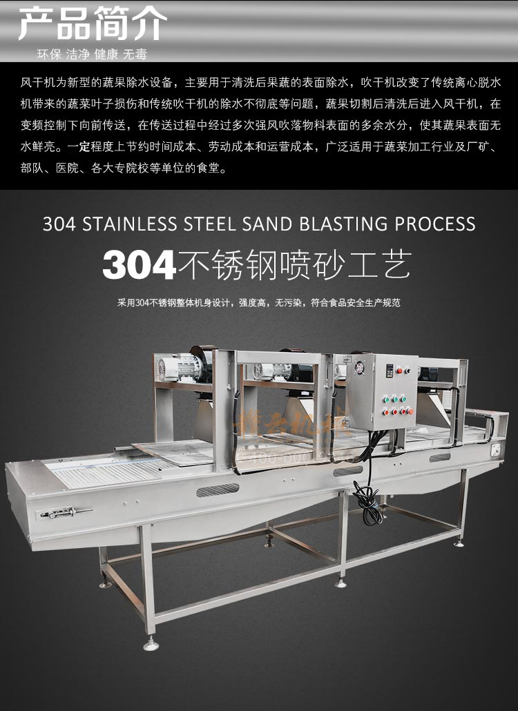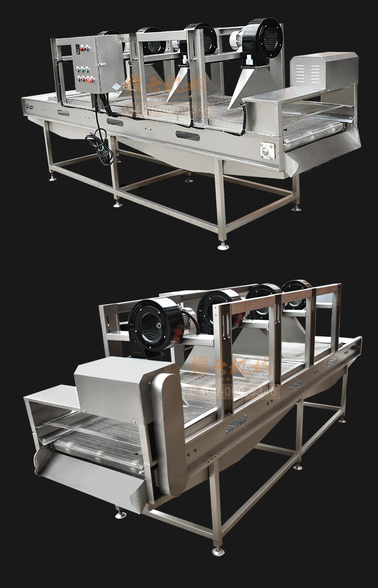 果蔬食品風(fēng)干機(jī),高效、快速、環(huán)保、安全、自動(dòng)化。強(qiáng)風(fēng)去除表面水分+震動(dòng)輸送。果蔬食品風(fēng)干機(jī)主要用于清洗后的果蔬去除表面水,震動(dòng)吹干改變了傳統(tǒng)離心脫水機(jī)帶來(lái)的蔬菜也損傷和傳統(tǒng)風(fēng)干機(jī)除水不徹底等問(wèn)題,蔬果切割后清洗后進(jìn)入震動(dòng)風(fēng)干機(jī),在震動(dòng)頻率下使物料向前傳送,在傳送過(guò)程中經(jīng)過(guò)多次強(qiáng)風(fēng)吹落物料表面的多余水分,使其蔬果表面無(wú)水鮮亮。最大程度上節(jié)約時(shí)間成本,勞動(dòng)成本和運(yùn)營(yíng)成本,廣泛適用于蔬菜加工行業(yè)及廠礦、部隊(duì)、醫(yī)院、各大院校等單位食堂。