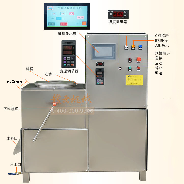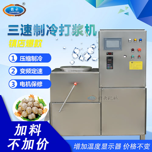 贛云三速制冷打漿機(jī),采用智能操控系統(tǒng) ,根據(jù)原料的不同選擇不同的速度進(jìn)行打漿,三種速度配備三種刀組,分別是高速打漿刀,中速打漿刀和低速打漿刀。三機(jī)合一不僅占地面積小,集可視化觸屏操作、預(yù)設(shè)打漿時(shí)間、溫控感應(yīng)系統(tǒng)、超負(fù)荷停機(jī)報(bào)警系統(tǒng)、流水式搖桿控制出料,并配備強(qiáng)勁的壓縮制冷系統(tǒng),效果好,十分鐘就能達(dá)到理想的制冷效果,更好的保證了肉漿的鮮度。