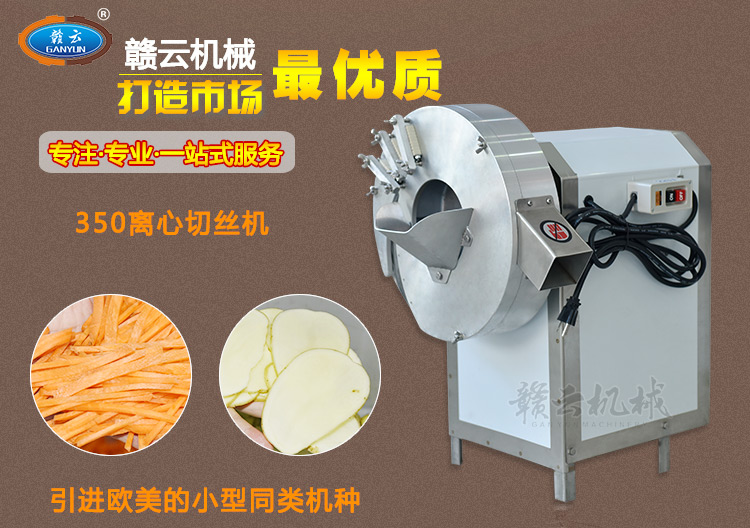 本機采用物料離心作用力使物料與桶壁固定刀片發(fā)生切割分離作用,可切出與物料長度基本一致的絲或片,整機采用201不銹鋼板材設(shè)計,離心切割部位采用鋁合金材料,耐腐蝕,長期使用不生銹,切絲規(guī)格固定不可調(diào),可定制1-3mm切絲刀,將切絲到拆卸下來即可切片。是小型食堂、飯店等球根類切絲切片好幫手。