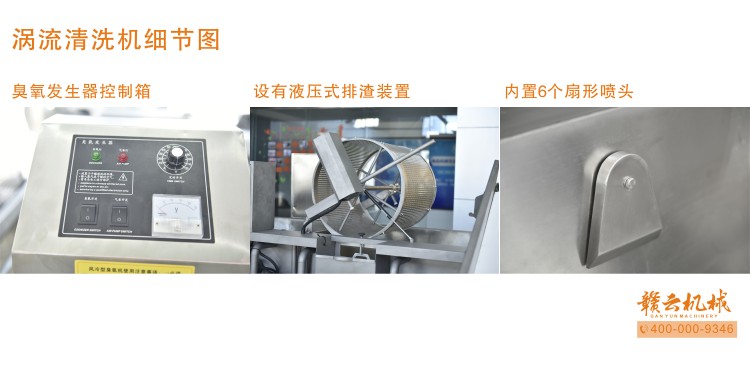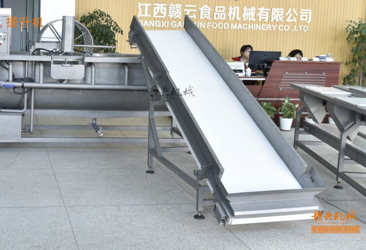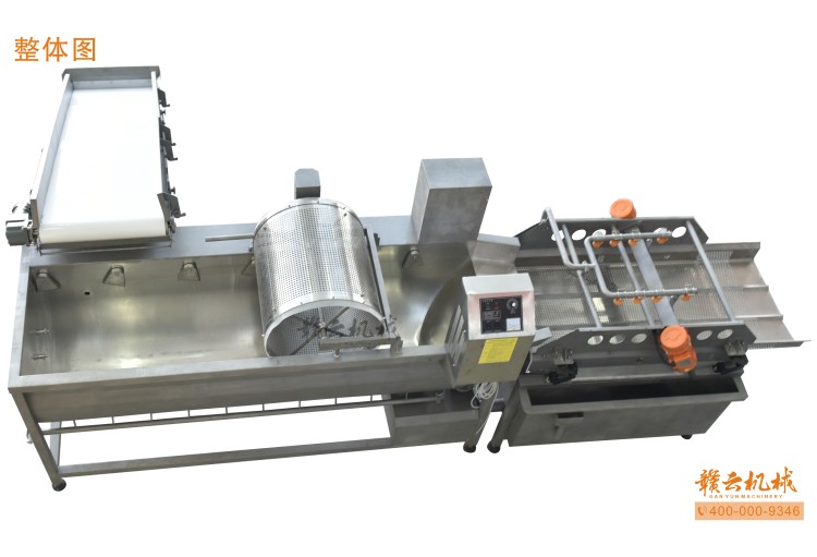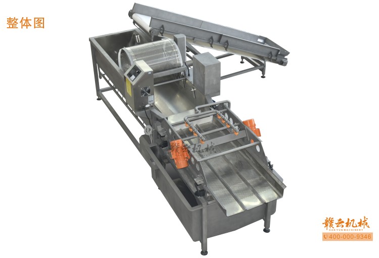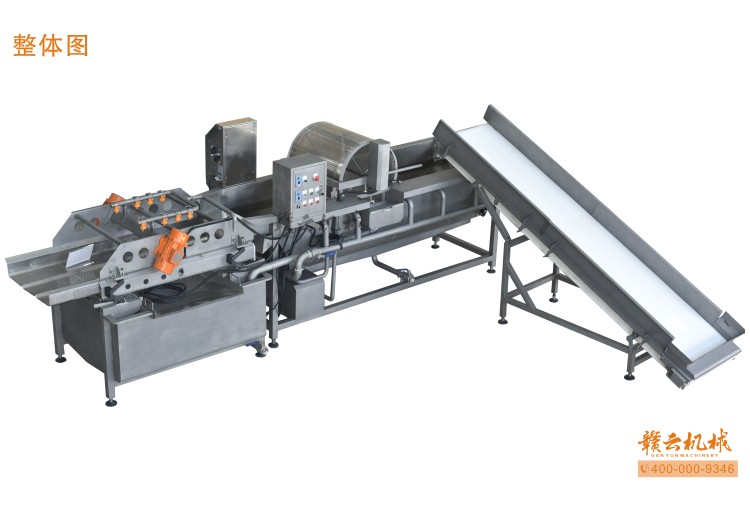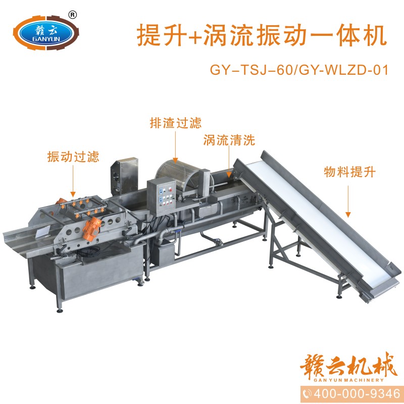 本機由皮帶提升機+渦流振動清洗機組合而成,皮帶提升機主要用于將切割出來的蔬菜提升至渦流清洗水槽內(nèi),經(jīng)由6個扇形噴頭高壓噴水形成水槽內(nèi)水流成渦流狀而命名為渦流清洗,渦流清洗機上端設(shè)置有液壓式排渣滾筒裝置,并引導(dǎo)蔬菜向高頻振動機方向移動,此外渦流清洗機還裝置有臭氧發(fā)生器,主要用于去除農(nóng)藥殘留之用,高頻振動機上端設(shè)置有多個噴頭,對蔬菜進行二次沖洗,達到清洗干凈的作用。振動篩振動加快抖落水珠和細(xì)小顆粒,使得所清洗出來的蔬菜能直接用于真空包裝或食堂熟食加工之用。與本套設(shè)備配合使用的還有前期的數(shù)字切菜機和蔬菜分選挑選機。贛云機械,掌握肉丸加工成套設(shè)備,中央廚房凈菜設(shè)備核心技術(shù)。咨詢電話400-0009346