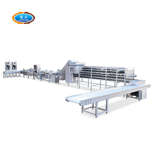 贛云整套肉丸生產(chǎn)流水線設(shè)備一般是以原料凍肉來進行加工生產(chǎn)的。首先針對凍肉使用前處理設(shè)備,刨肉機針對凍肉進行加工成肉塊或肉片,在使用凍肉絞肉機將刨好后的肉片肉塊進行絞切加工成肉粒后再進行打漿機攪拌打漿,然后再使用肉丸成型機加工成丸子,出來的丸子要先經(jīng)過溫水定型區(qū)定型后再經(jīng)過熟化區(qū)熟化,熟化后的丸子進行水冷冷卻,再提升風(fēng)干后進行冷庫急凍后再打包。