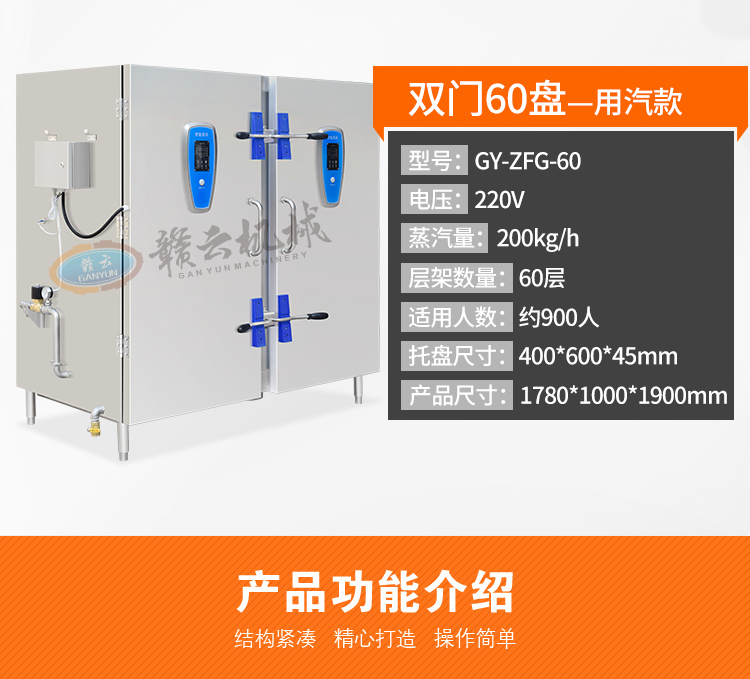 主頁(yè)-> 中央廚房設(shè)備->米飯?jiān)O(shè)備->雙門智能蒸房(60盤)