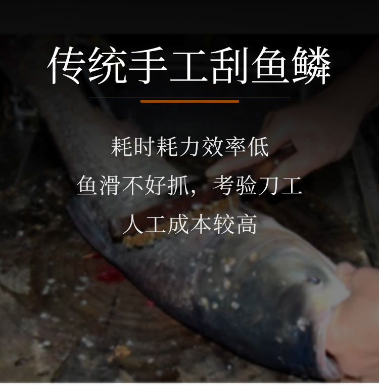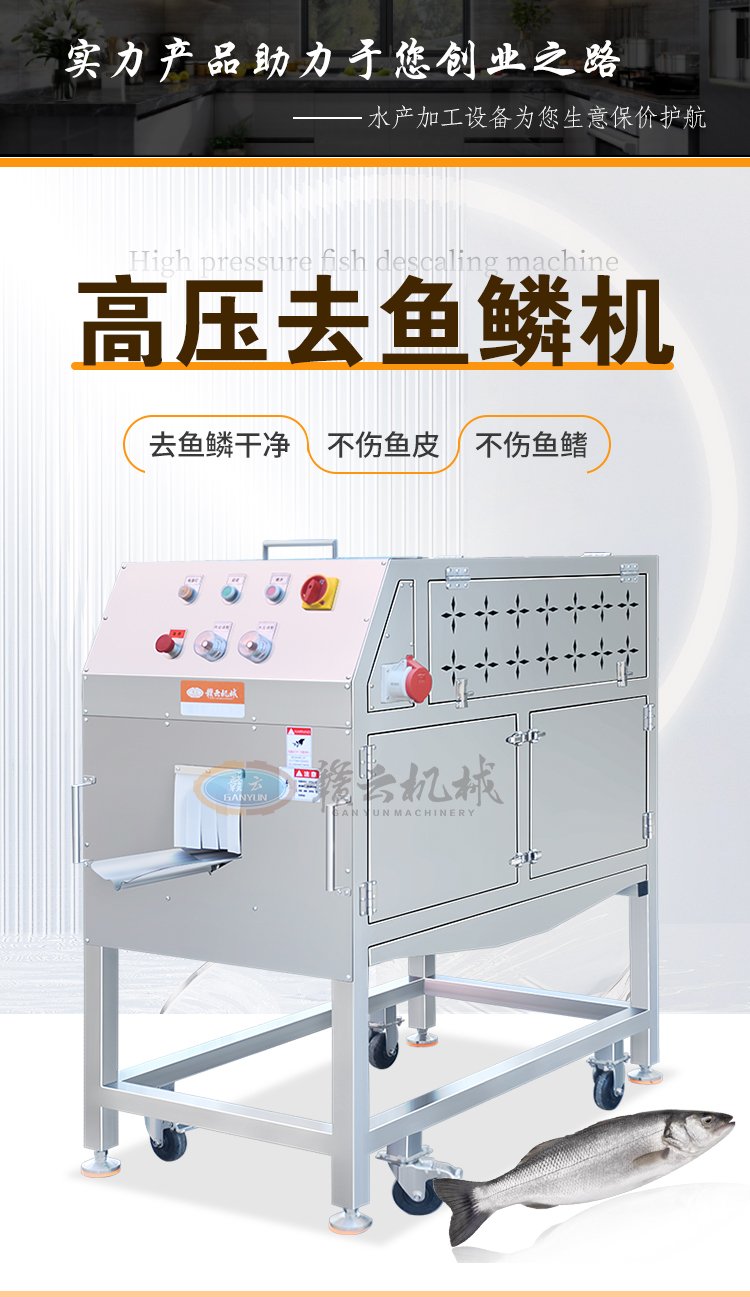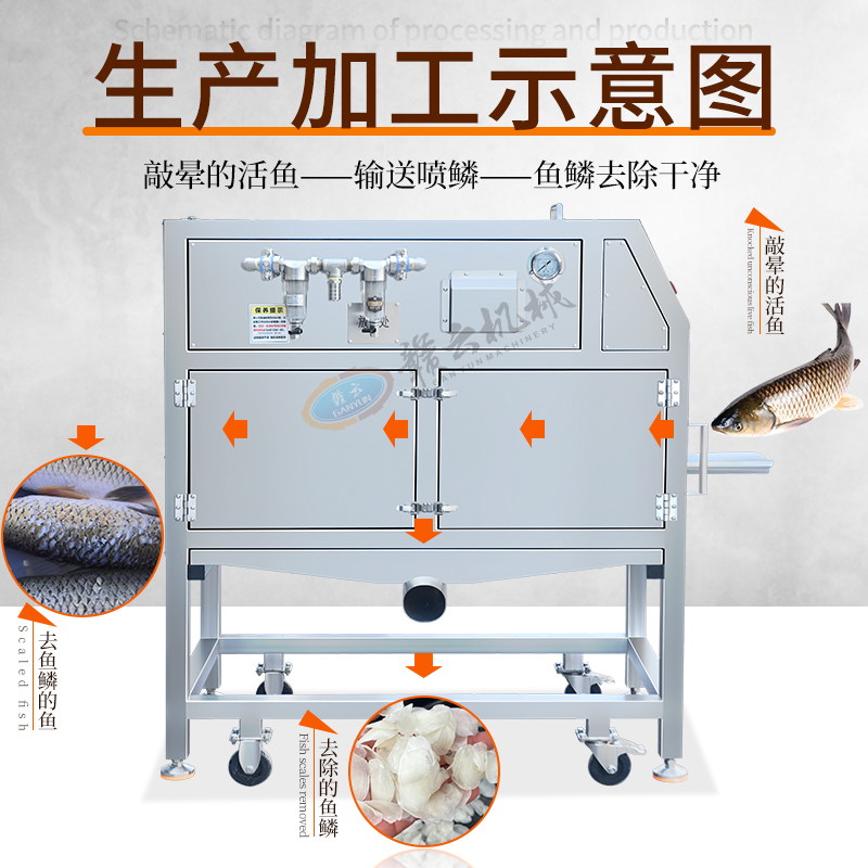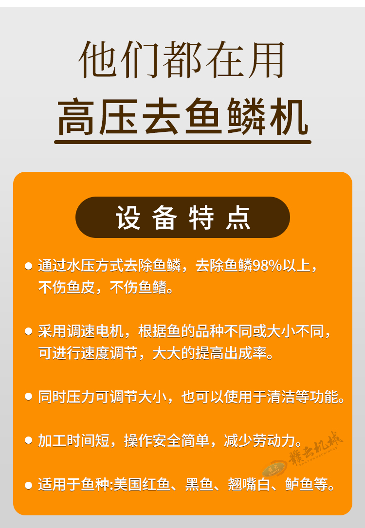 通過水壓方式去除多種魚類魚鱗,去魚鱗干凈、不傷魚皮和魚鰭。