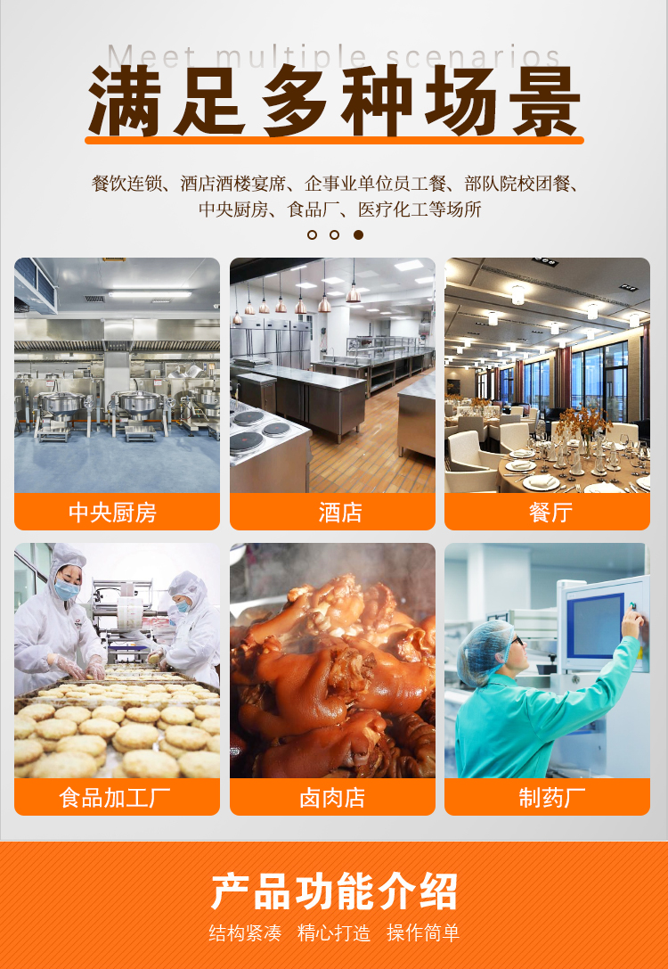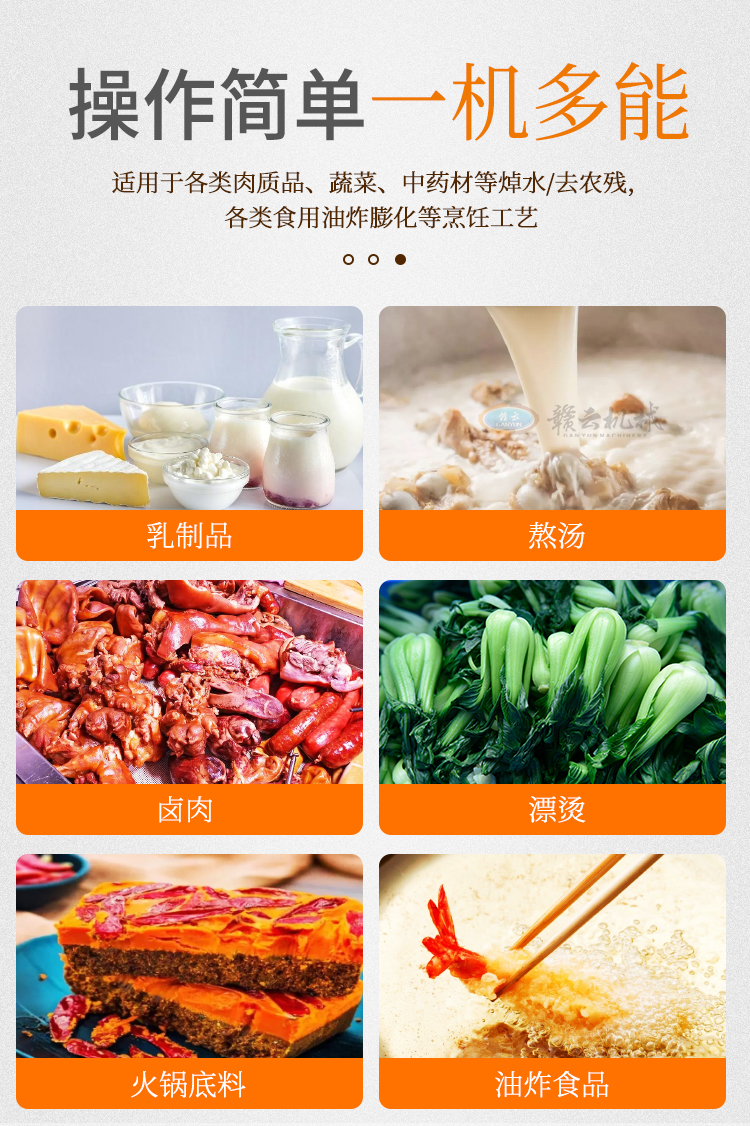 適用于各類肉質(zhì)品、蔬菜、中藥材等焯水/去農(nóng)殘,各類食用油炸膨化等。