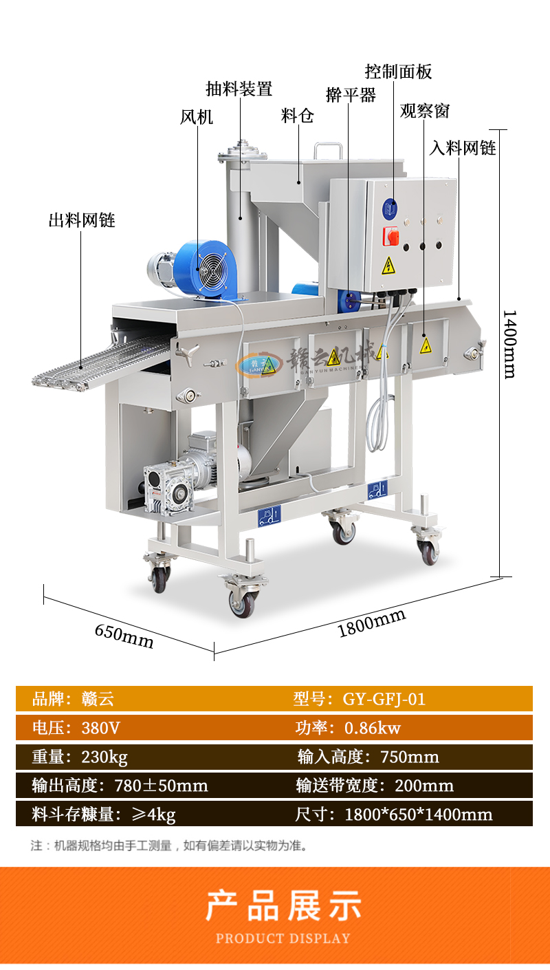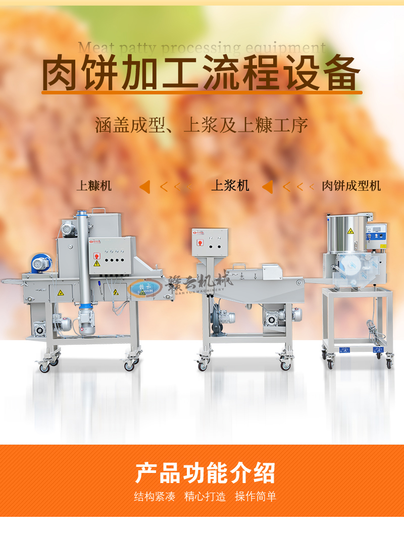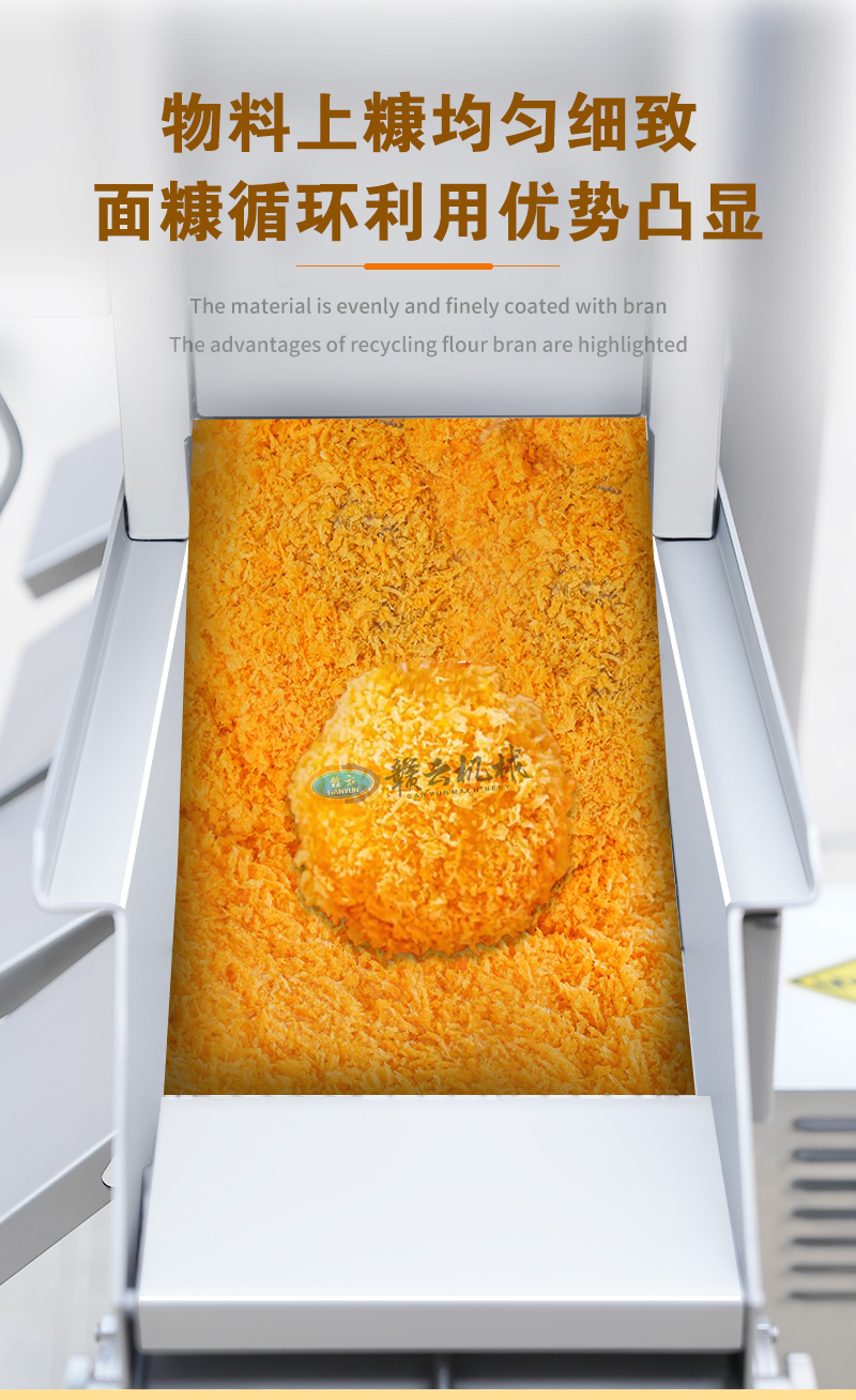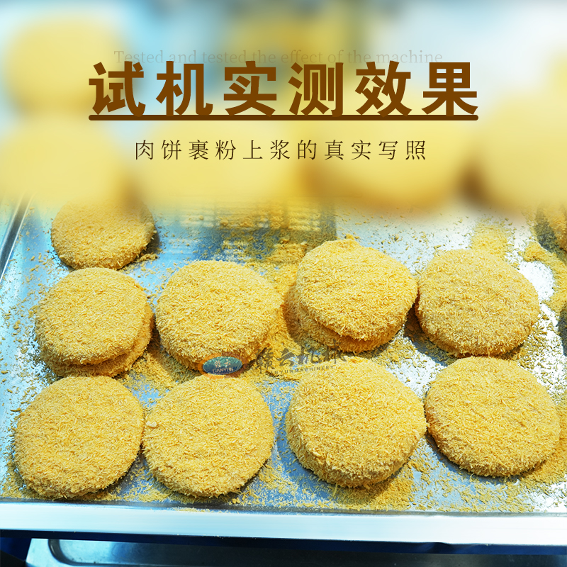 用于雞排、肉餅、魚排、牛排等各種油炸食品的快速自動上漿上糠。