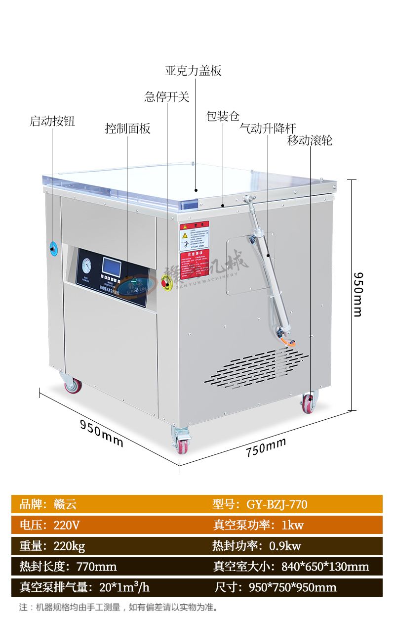 重 量: 220kg 體 積: 950*750*950 mm
