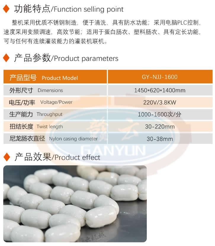 肉制品前處理->專用灌腸設(shè)備->1600高速扭結(jié)機 | |||||||