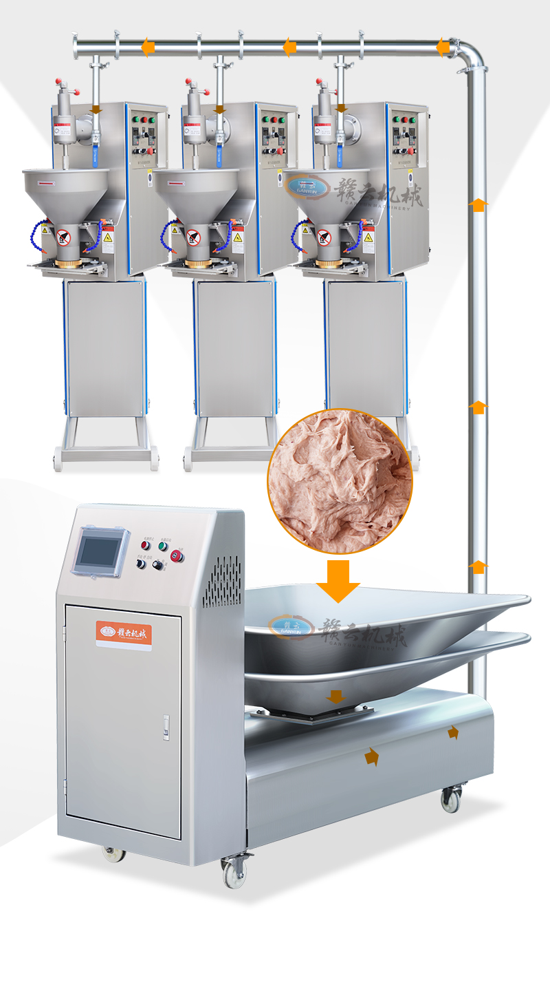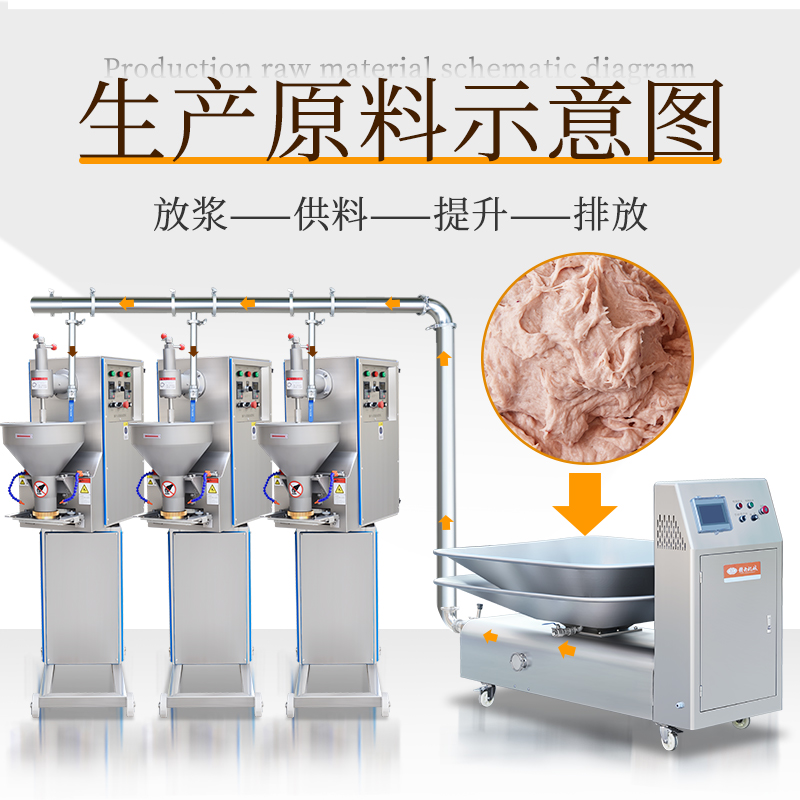 肉漿供料機通過不銹鋼單螺桿進行精準供料,適用于魚丸、牛肉丸、火腿腸等全自動生產(chǎn)線時供料,整體供料穩(wěn)定,輸送平衡,在連續(xù)供料時不會破壞漿料顆粒纖維,能有效提升工廠自動化程序。