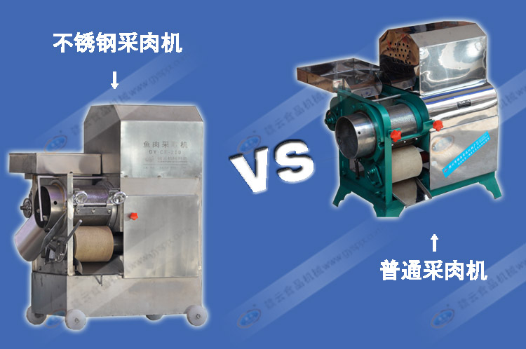 從產(chǎn)品的細節(jié)圖中可看出普通采肉機和不銹鋼采肉機的品質(zhì)區(qū)別。