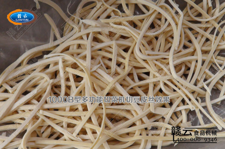 成品豆皮較長較寬,手工切豆皮絲不僅麻煩,而且所切規(guī)格尺寸不均勻,1000B型切菜機(jī)切豆皮絲不但切絲厚薄均勻,而且加工效率是手工切絲的幾十倍,原來需要十幾員工人分配切絲的,現(xiàn)在一臺機(jī)器就解決了豆皮廠加工需求,大大提高了生產(chǎn)廠家的加工效率,同時解放了更多的勞動力,降低了生產(chǎn)成本。