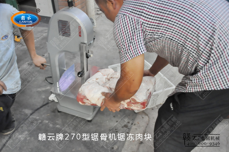 凍肉塊切割體驗(yàn)-贛云牌270型商用鋸骨機(jī)
