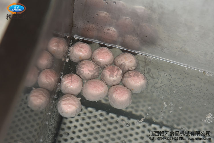 第四步:智能溫控雙加熱水槽定型熟化潮汕牛肉丸。定型溫度在70度左右,熟化溫度在90度左右
