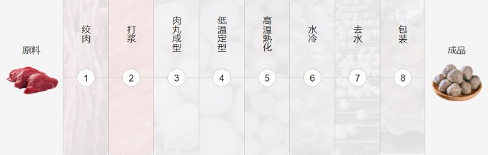肉丸加工流水線是將不同的肉料通過切割、打漿、成型、定型、熟化、冷卻、去水、包裝等肉丸加工生產自動化設備的解決方案。
