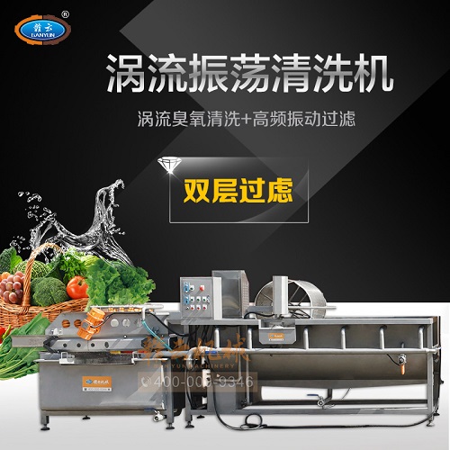 渦流清洗機是我公司開發(fā)的一款新型的水果、蔬菜清洗加工機械。這臺設備與常規(guī)款設備有2大不同點,一、小水箱加去雜裝置,可以把清洗時排除的物料殘渣排出到設備外面,二、本機采用聚酯絲網(wǎng)帶輸送,解決了金屬網(wǎng)帶在運行過程中因摩擦而產(chǎn)生的黑水和金屬碎屑現(xiàn)象。整體設備故障率低,結構緊湊,操作方便,對果蔬清洗效果好,不損傷物料,而且濾水性好,產(chǎn)能高。