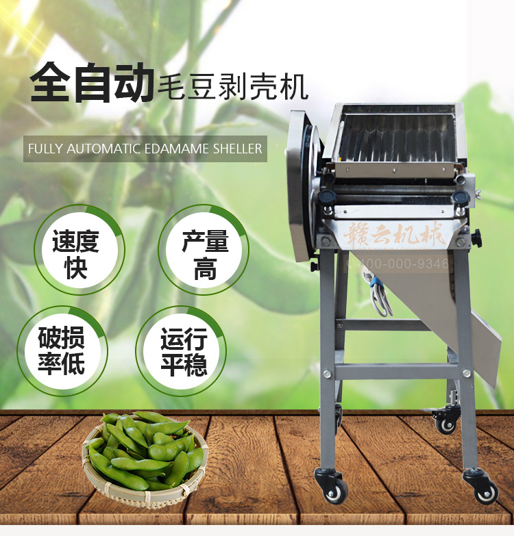 240自動剝豆機,電耗0.15度/小時。機器剝毛豆速度快,衛(wèi)生、效益好。