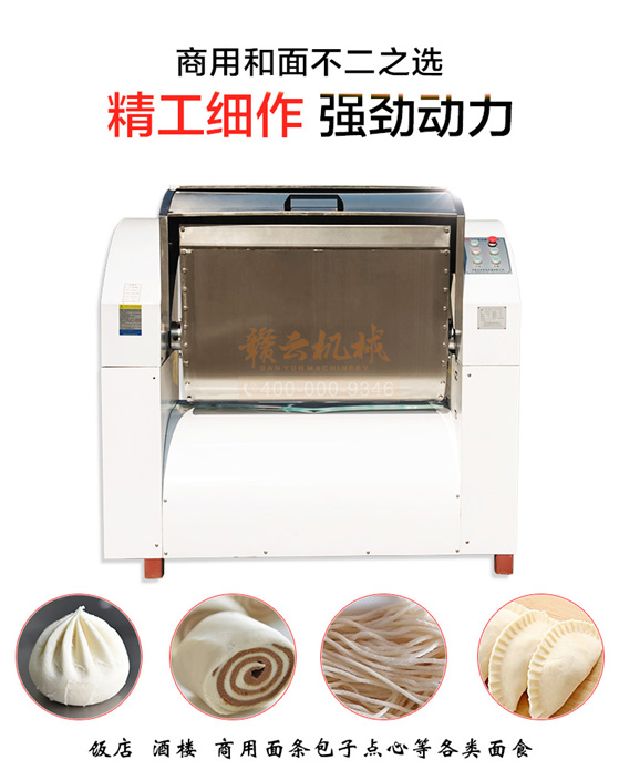 贛云100KG和面郎,超強模擬手工和面,使面的勁道快速形成,蛋白組織結構均衡,最終面的筋性、咬勁、拉力都遠遠優(yōu)于其他形式和面機的和面效果,并且加工出來的面食,口感光滑、彈性好、咬勁十足.