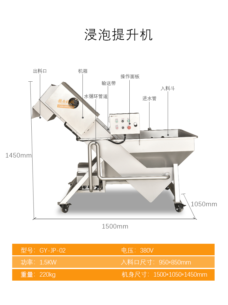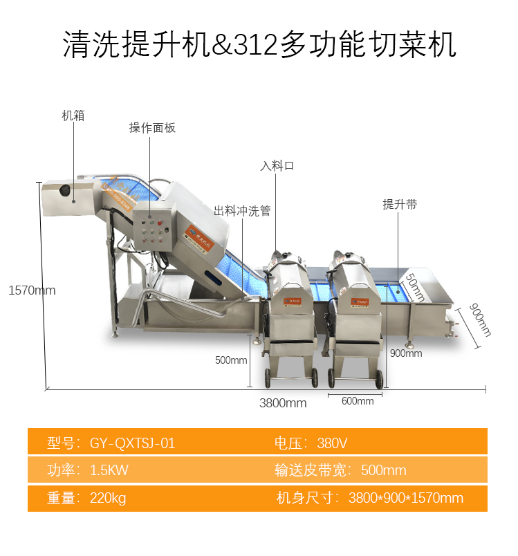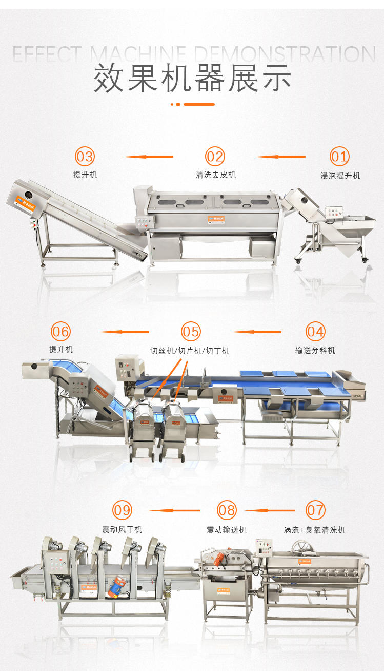 他集浸泡機,清洗機,提升機,切割機,風干機等多種機器為一體,實現(xiàn)了瓜果從剛摘到可下鍋炒的全部過程,完美的節(jié)省了人力及時間,下面的圖片將詳細介紹這些設備。