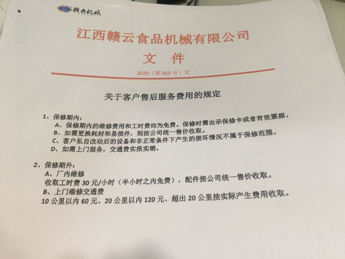 贛云食品機(jī)械公司關(guān)于客戶售后服務(wù)規(guī)定