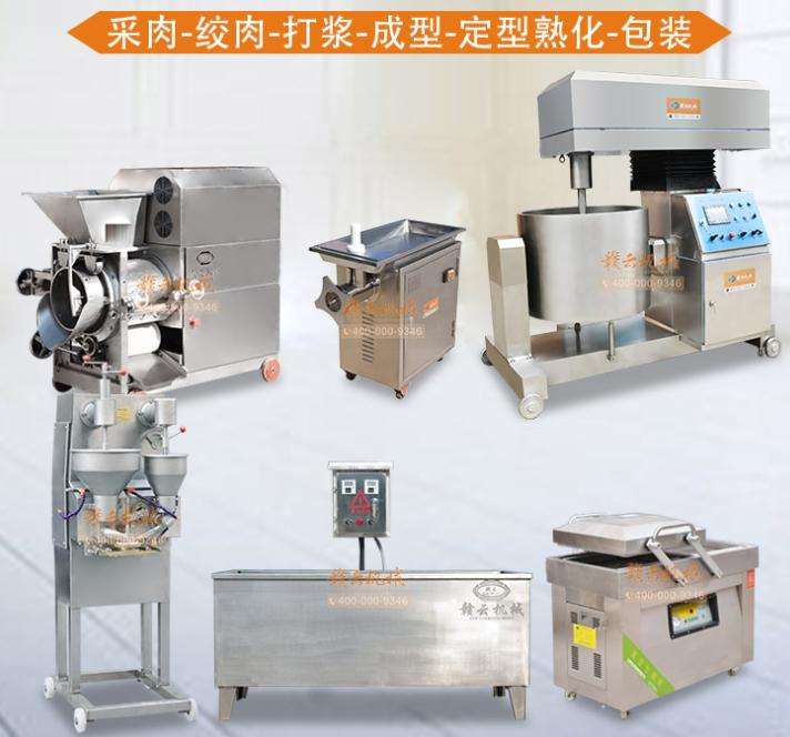 丸子加工的成套設(shè)備有:魚(yú)肉采肉機(jī)——立式不銹鋼絞肉機(jī)——350型液壓式打漿機(jī)——第三代肉丸包心機(jī)(實(shí)心丸子、包心丸子、貢丸機(jī)器、多功能丸子設(shè)備)——溫控雙加熱水槽——雙室真空包裝機(jī)。