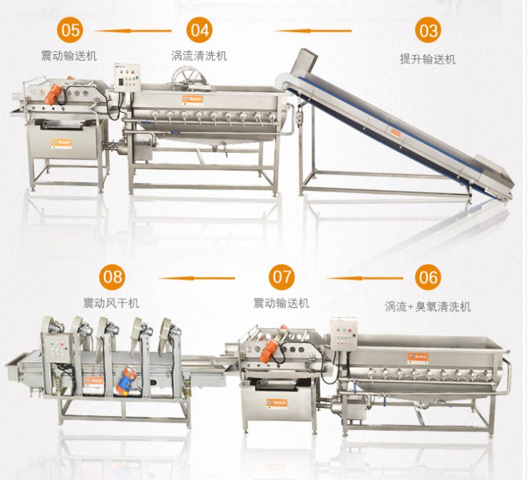 渦流振動(dòng)清洗機(jī)采用螺旋狀混合水流清洗物料,高頻振動(dòng)噴洗過(guò)濾,以延長(zhǎng)清洗路徑,節(jié)約水源。二次沉淀過(guò)濾水循環(huán)系統(tǒng),高效節(jié)能。機(jī)體內(nèi)設(shè)有臭氧發(fā)生器,高效降解果蔬殘留的化肥、農(nóng)藥等有毒物質(zhì),清除化學(xué)添加劑、激素等有害物質(zhì),殺滅海鮮中容易引起中毒的嗜鹽性菌等,以保證物料的鮮度。