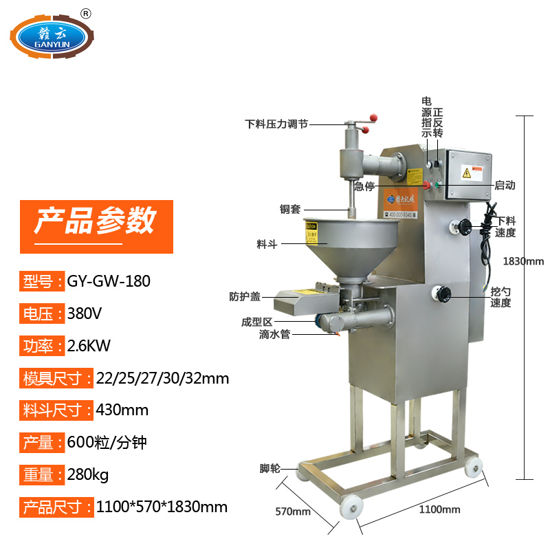 肉丸成型機(jī)械->實(shí)心肉丸機(jī)-> 180型高速挖式貢丸機(jī)